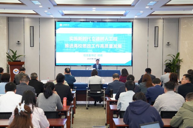 为深入贯彻党的二十大和二十届历次全会精神,全面落实习近平总书记关于教育的重要论述,纵深推进新时代立德树人工程落地见效。4 月 17 日上午,学校召开思政工作领导小组扩大学习会暨学生思政工作培训会。校党委书记闵辉以《实施新时代立德树人工程,推进思政工作高质量发展》为题作主题报告。校思政工作领导小组相关部门负责人、各学院党委书记、副书记、全体辅导员,学生工作部(处)、团委、研究生工作部全体人员参加会议。学习会由校党委副书记、副校长夏雅敏主持。